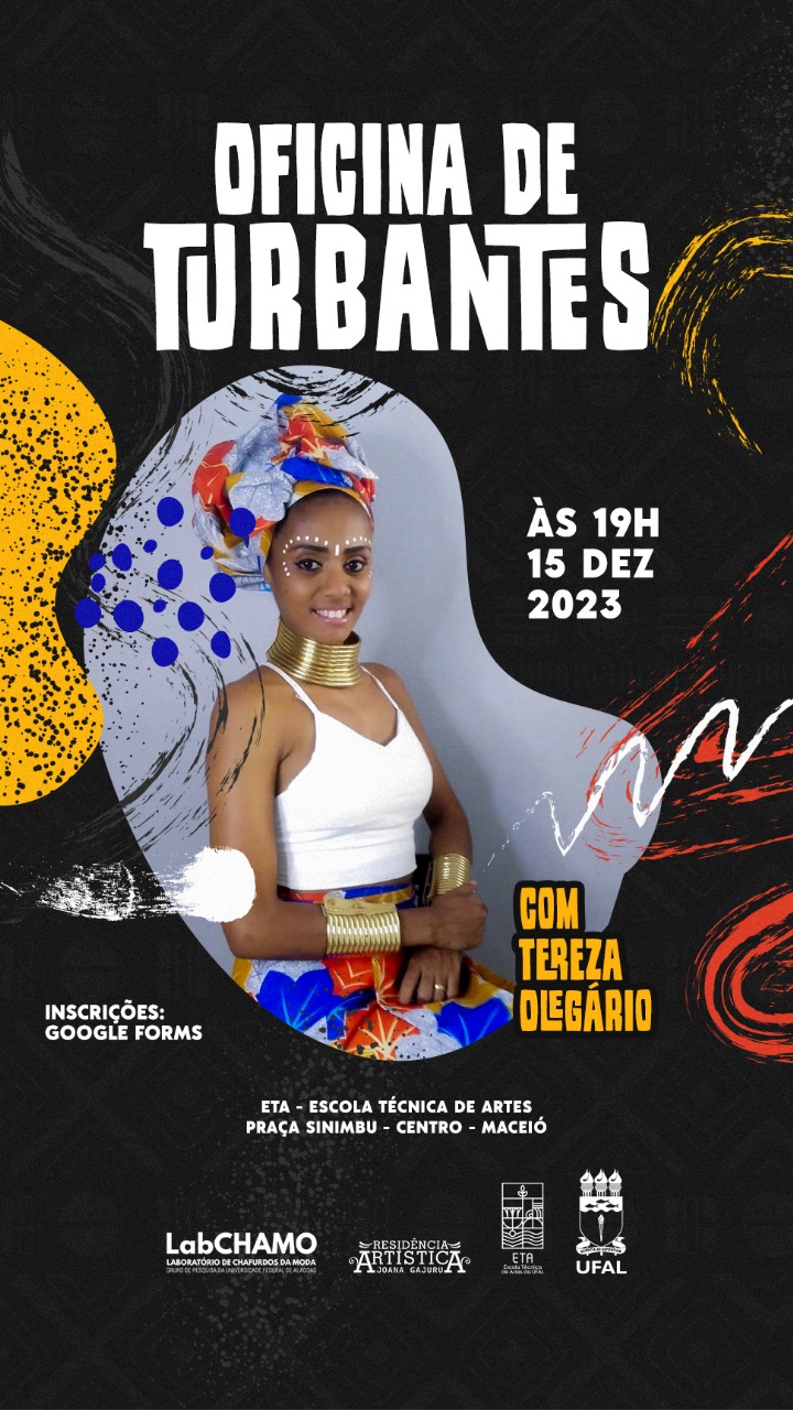 O curso de Produção de Moda, da ETA, está organizando a oficina de turbantes, onde receberá a ativista e microempresária Tereza Olegário. O intuito desta oficina é destacar o empoderamento do acessório no âmbito social e questionar a utilização deste em causa enquanto um objeto que é parte das origens das raízes de matriz africana no Brasil e, sobretudo, no Estado de Alagoas. A oficina mostrará como desenvolver as amarrações deste acessório. Atenção: os quinze primeiros participantes inscritos terão direito a um turbante da Olegário Turbantes. |